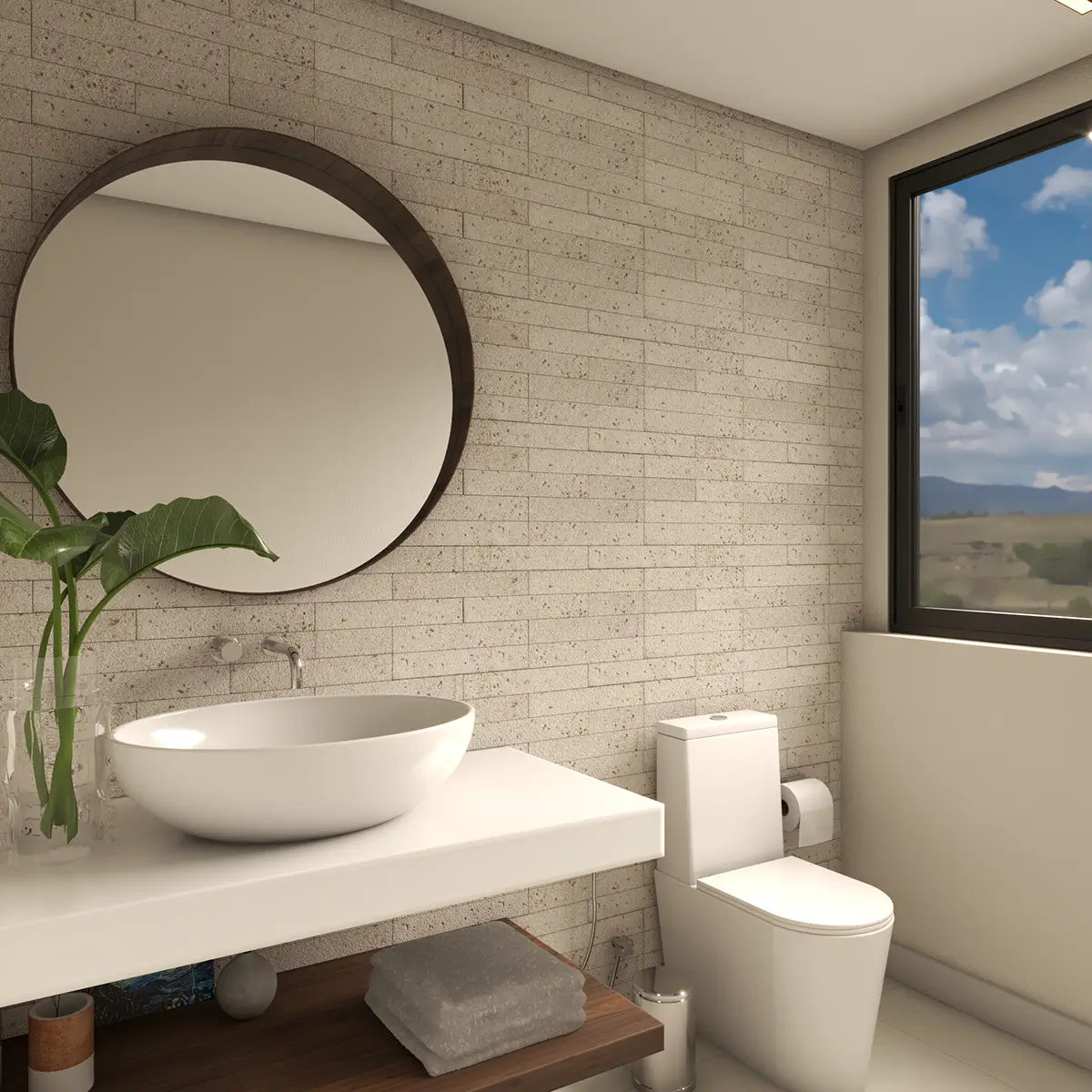 The self-adhesive stone cladding is an innovative and practical solution for those who want to renovate quickly, stylishly, and without complications. Made from a lightweight and durable material, it faithfully reproduces the texture, colour, and relief of natural stones, offering a three-dimensional effect that enhances any space.